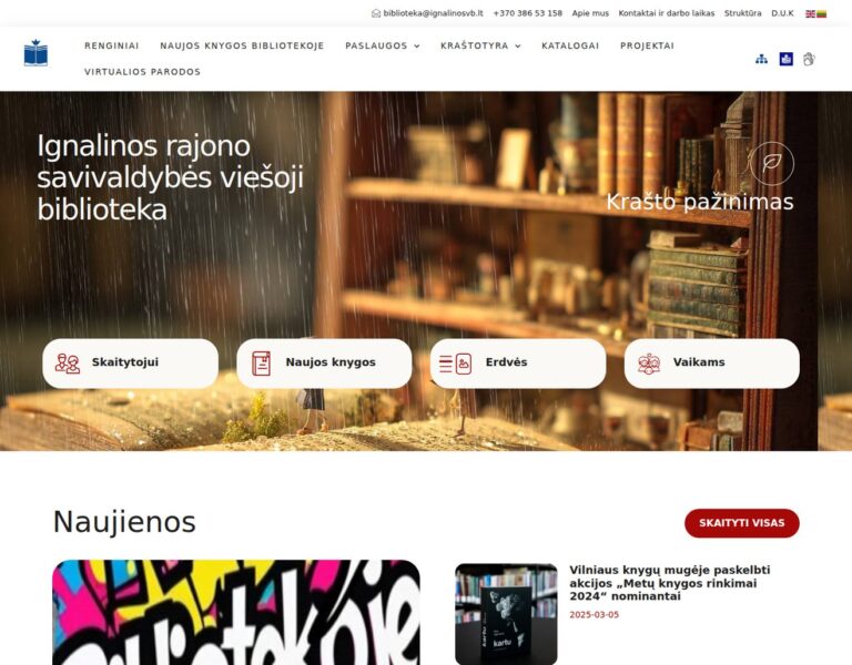 Nous avons conçu et développé un nouveau site web pour la Bibliothèque publique de la municipalité du district d’Ignalina afin de faciliter l’accès en ligne à ses services, événements et ressources. Le projet soutient le rôle de la bibliothèque en tant qu’institution publique accueillante, qui met les habitants en relation avec la lecture, l’apprentissage et la vie communautaire.