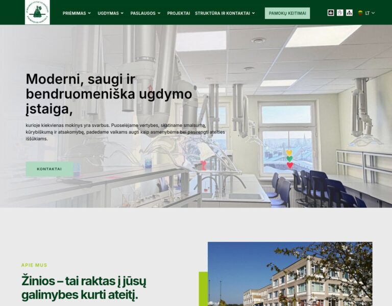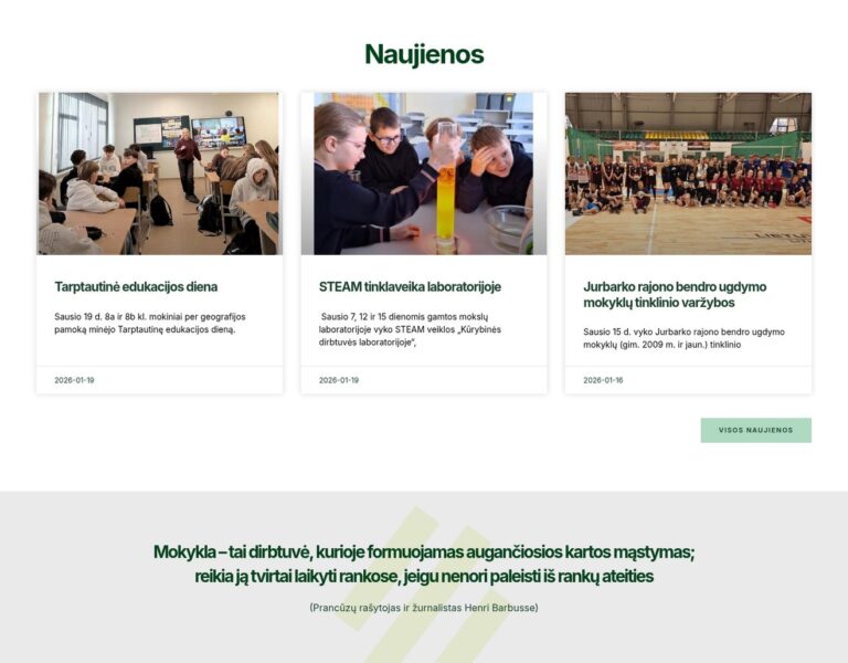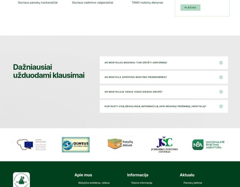 Nous avons conçu et développé un site web clair et accessible pour l’École primaire Jurbarkas Vytautas le Grand. La plateforme aide l’école à présenter les informations clés, à communiquer avec sa communauté et à refléter ses valeurs éducatives grâce à une présence numérique moderne.