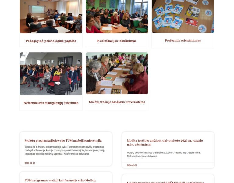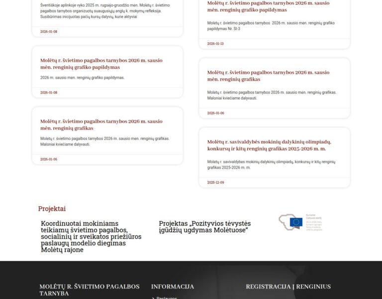 Nous avons conçu et développé un site web pour le Service de soutien à l’éducation du district de Molėtai, afin de faciliter l’accès aux informations essentielles pour les familles, les enseignants et les spécialistes. La plateforme soutient le rôle public de l’établissement en améliorant l’accès aux services, aux mises à jour et aux conseils pratiques pour la communauté locale.